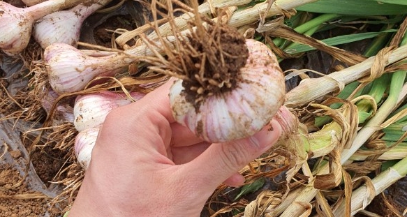 수확 신호는 마늘 잎이 절반 이상 누렇게 시들고 쓰러질 때다. 이때를 '황엽기(잎이 노랗게 마르는 시기)'라고 하는데, 이 시기를 놓치면 통이 갈라지거나 껍질이 벗겨지면서 상품성이 떨어진다. 수확 전 2~3주는 물 주기를 중단해 껍질이 마르고 단단하게 굳도록 해야 저장성도 좋아진다.